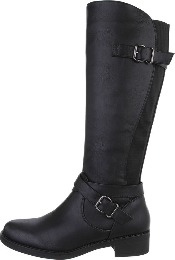 Die schlichte schwarze Farbgebung der Stiefel macht sie zu einem zeitlosen Accessoire, das zu einer Vielzahl von Outfits passt. Kombiniere sie zu Jeans, Röcken oder Kleidern und genieße die alltagsgerechte Eleganz.